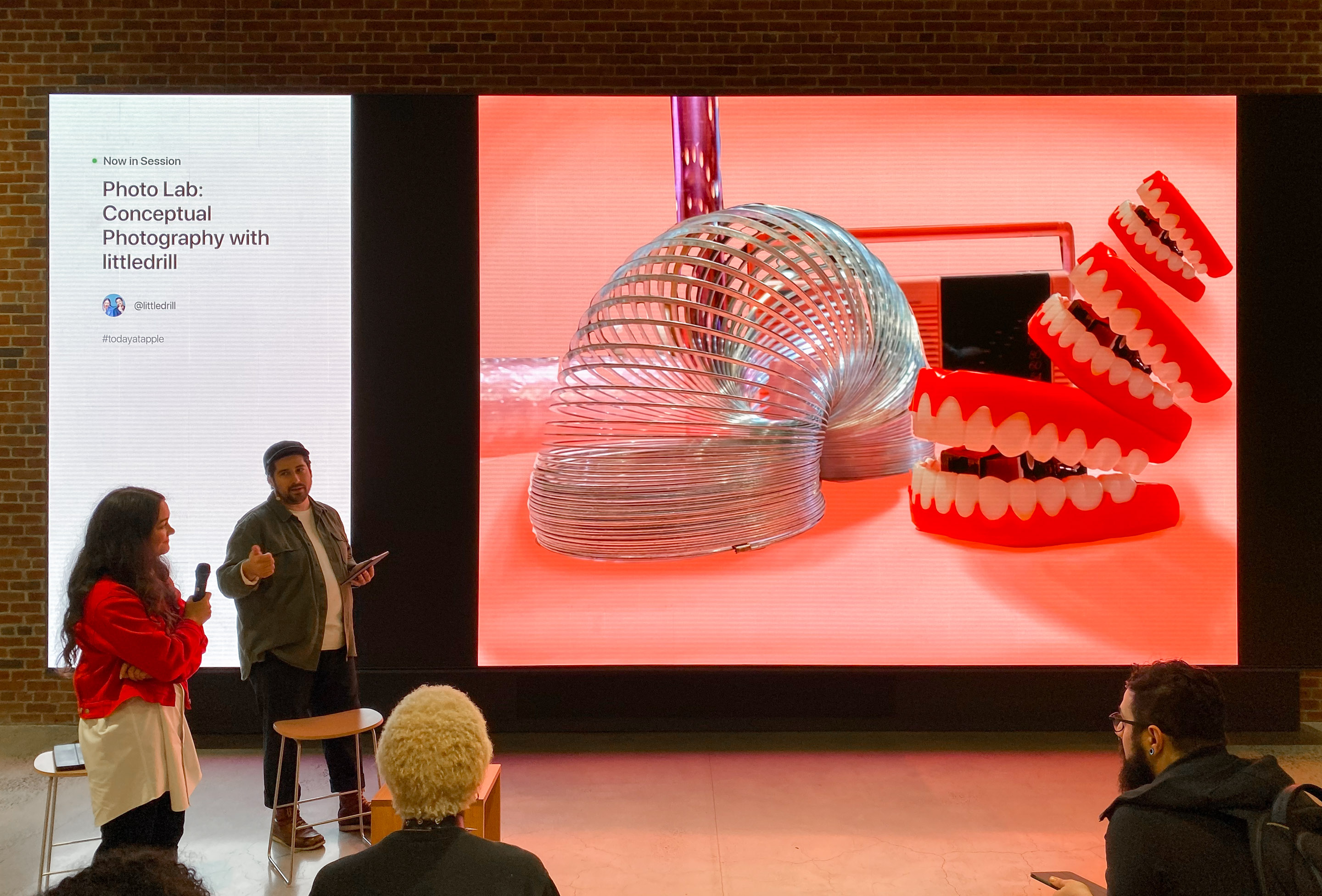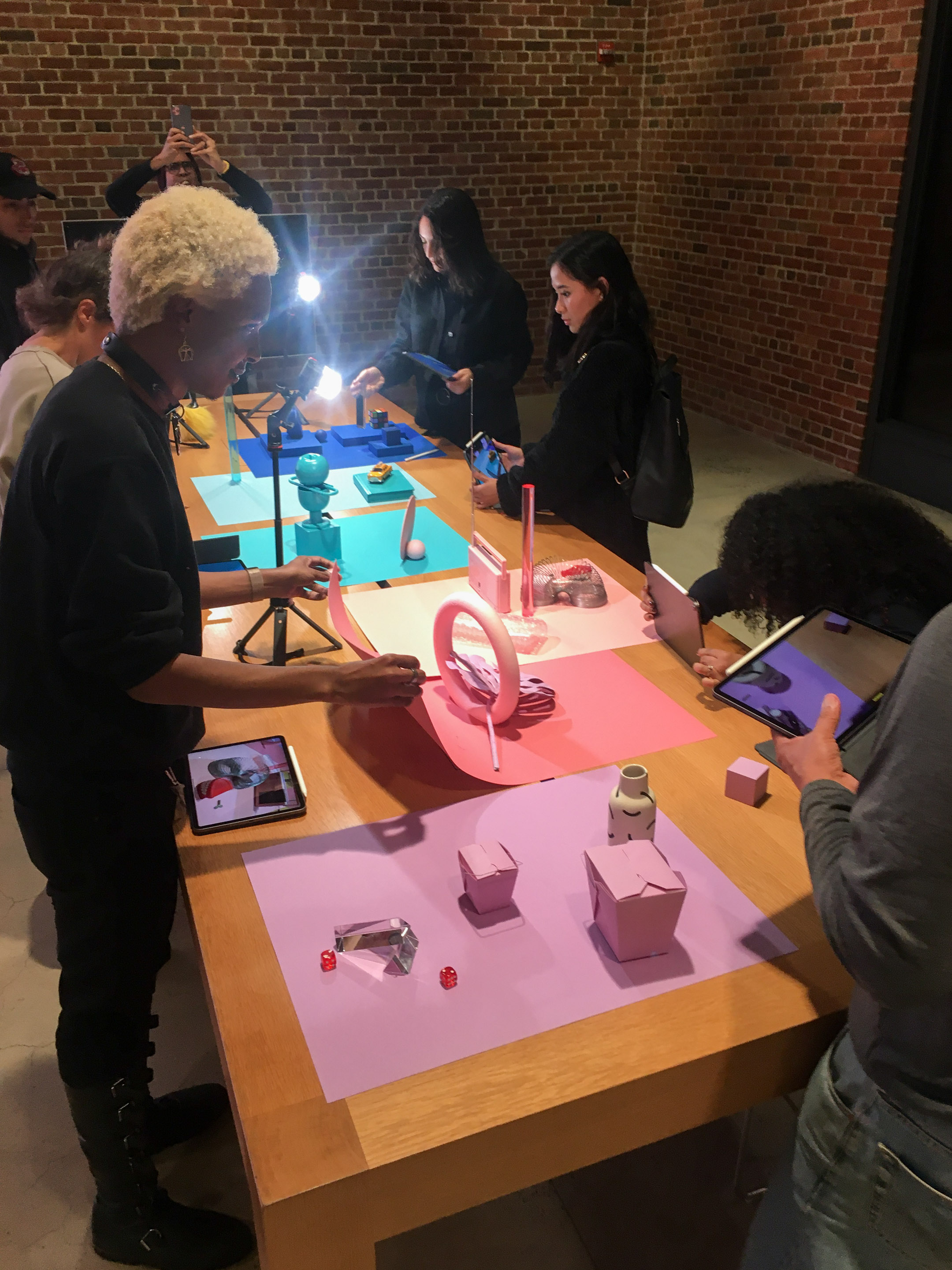 Miniature versions of the conceptual photography stations Shelby and James design in their studio were recreated at Apple Williamsburg for session attendees to experiment with. Rather than focusing on the technical aspects of taking a shot, emphasis was placed on being inspired by what you have within reach at the moment. Guests were invited to just jump in and see what kind of images they could create.
