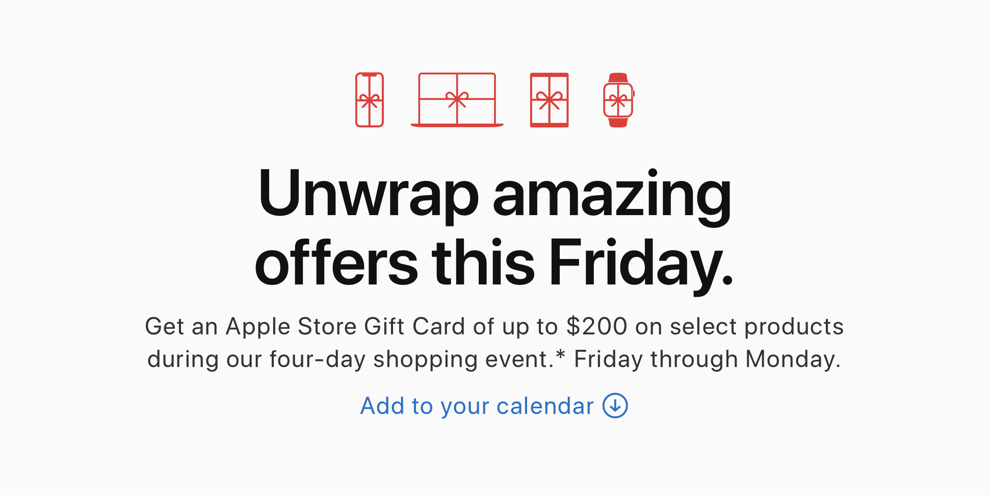 The exact details of the offer are yet to be announced. Apple says that gift card values vary based on products purchased, so be wary of the “up to” phrasing. It’s likely that some of Apple’s newest products will be ineligible for any gift card at all.