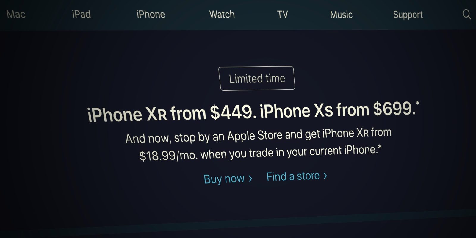In the letter, Cook said Apple was going to make it easier for customers to trade in a phone at Apple Stores and finance the purchase over time. In December, Apple plastered banners on its website and retail stores advertising the iPhone XR for $449, with the asterisk that the price included the trade-in value of an iPhone 7 Plus. The boosted trade-in promo offer was initially advertised as a ‘limited time’ offer, but it kept getting extended.