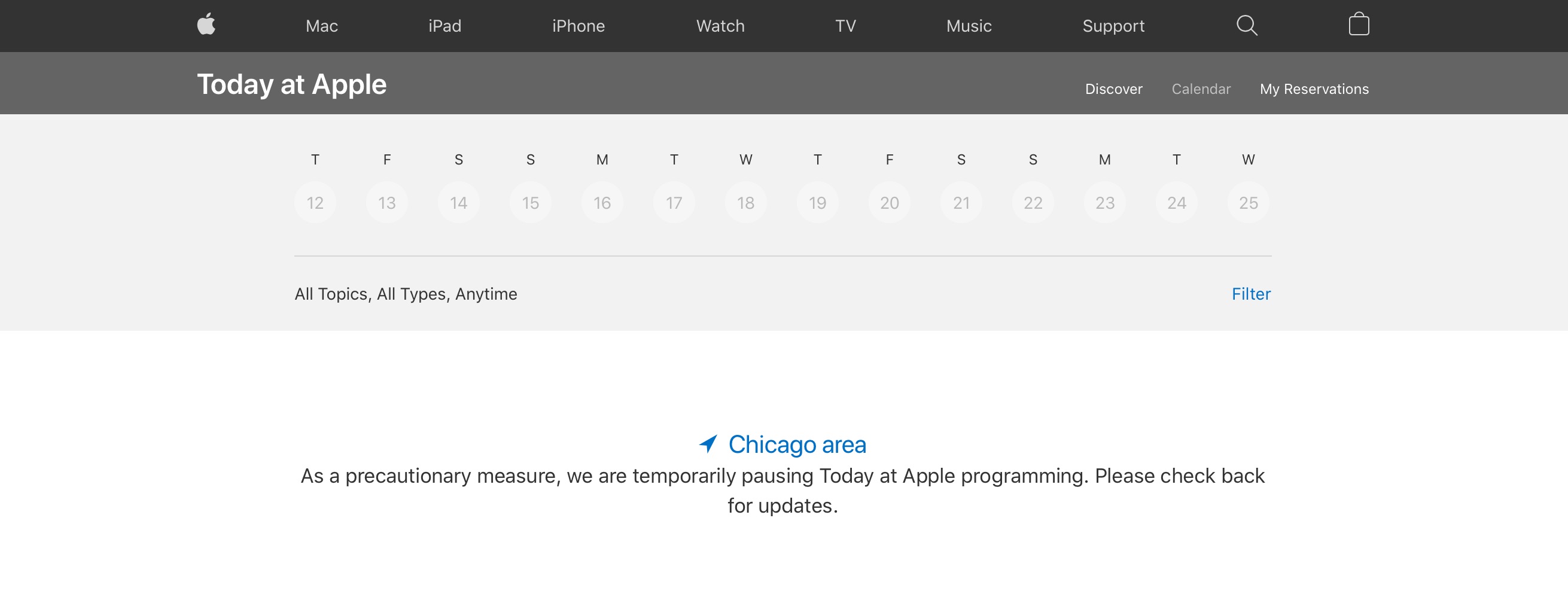As global efforts to mitigate the effects of the COVID-19 disease continue, Apple has temporarily suspended Today at Apple sessions at all stores in the United States, Canada, Mexico, and Brazil. The pause in creative programming follows a steady stream of daily new health precautions at Apple Stores and regional session cancelations earlier in the week.