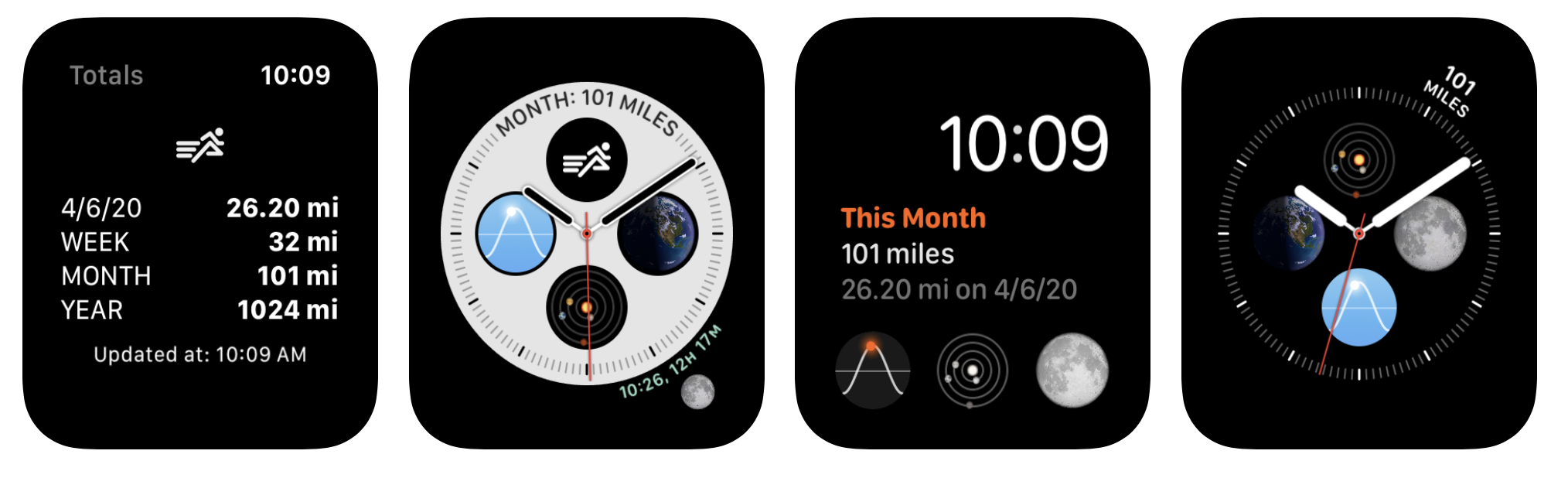 Tempo for Apple Watch displays four mileage totals inside the app: most recent run, this week, this month, and this year. Tempo is also available as a complication on your watch face for the first time ever.
