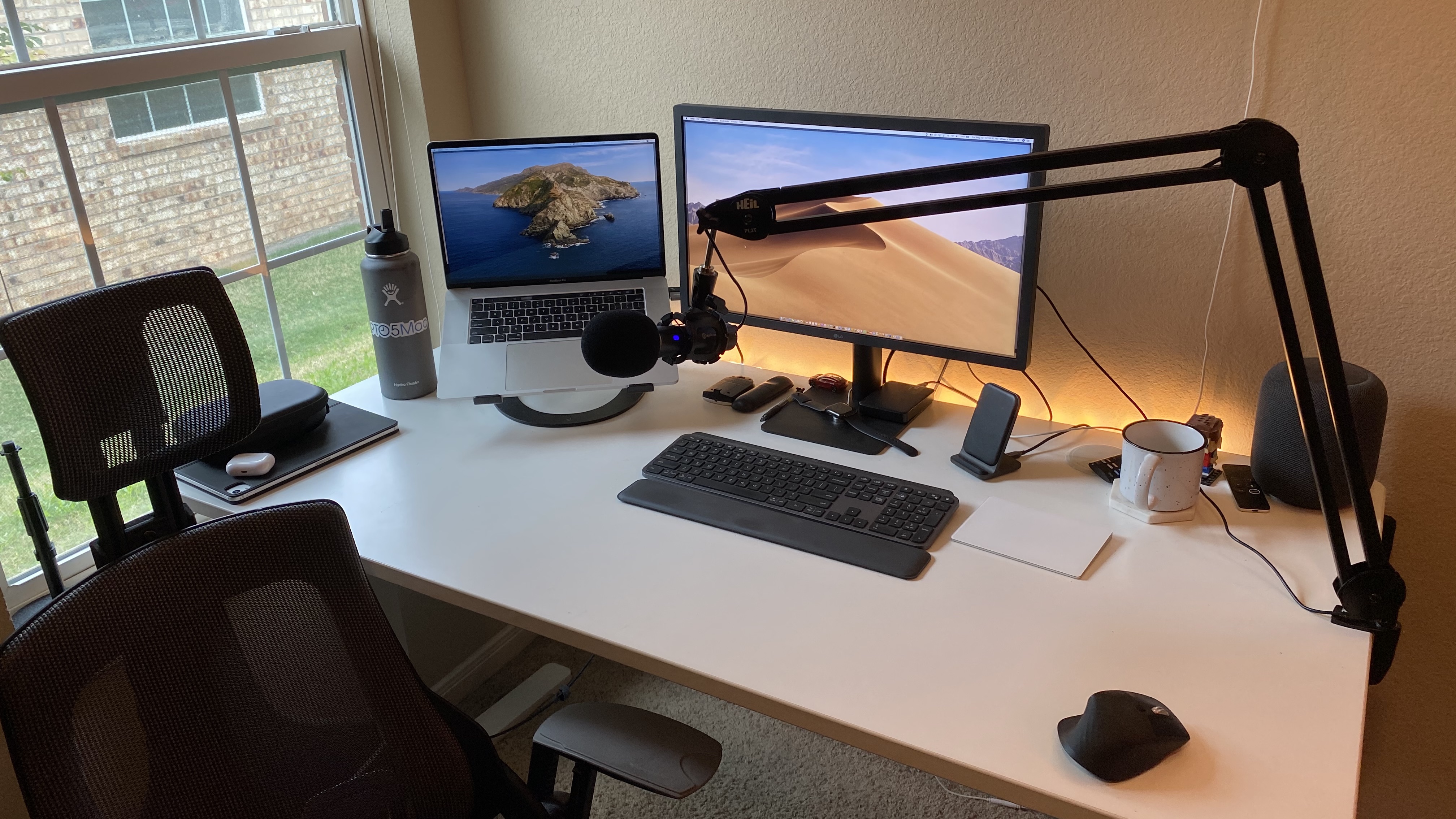 How do I use the iPad Pro? My primary setup right now is a 16-inch MacBook Pro and 24-inch LG UltraFine display. This setup lives primarily at my desk, with the MacBook Pro rarely leaving its Twelve South Curve stand — essentially, the MacBook Pro is a desktop computer, but the versatility to go portable is there when needed. Fun fact: the MacBook Pro actually gets dusty because it’s so rare for me to detach it nowadays.