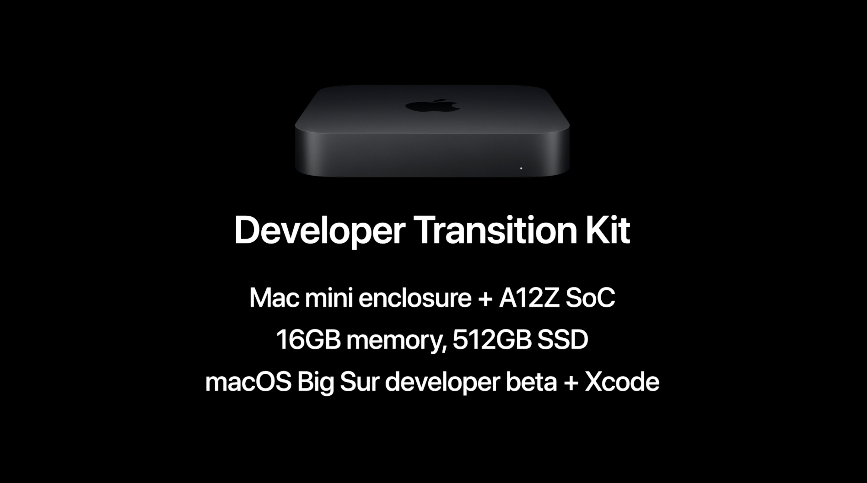 - Developer Transition Kit is a Mac mini powered by the A12Z SoC with 16GB memory, 512GB SSD, developers can apply today and units start shipping this week