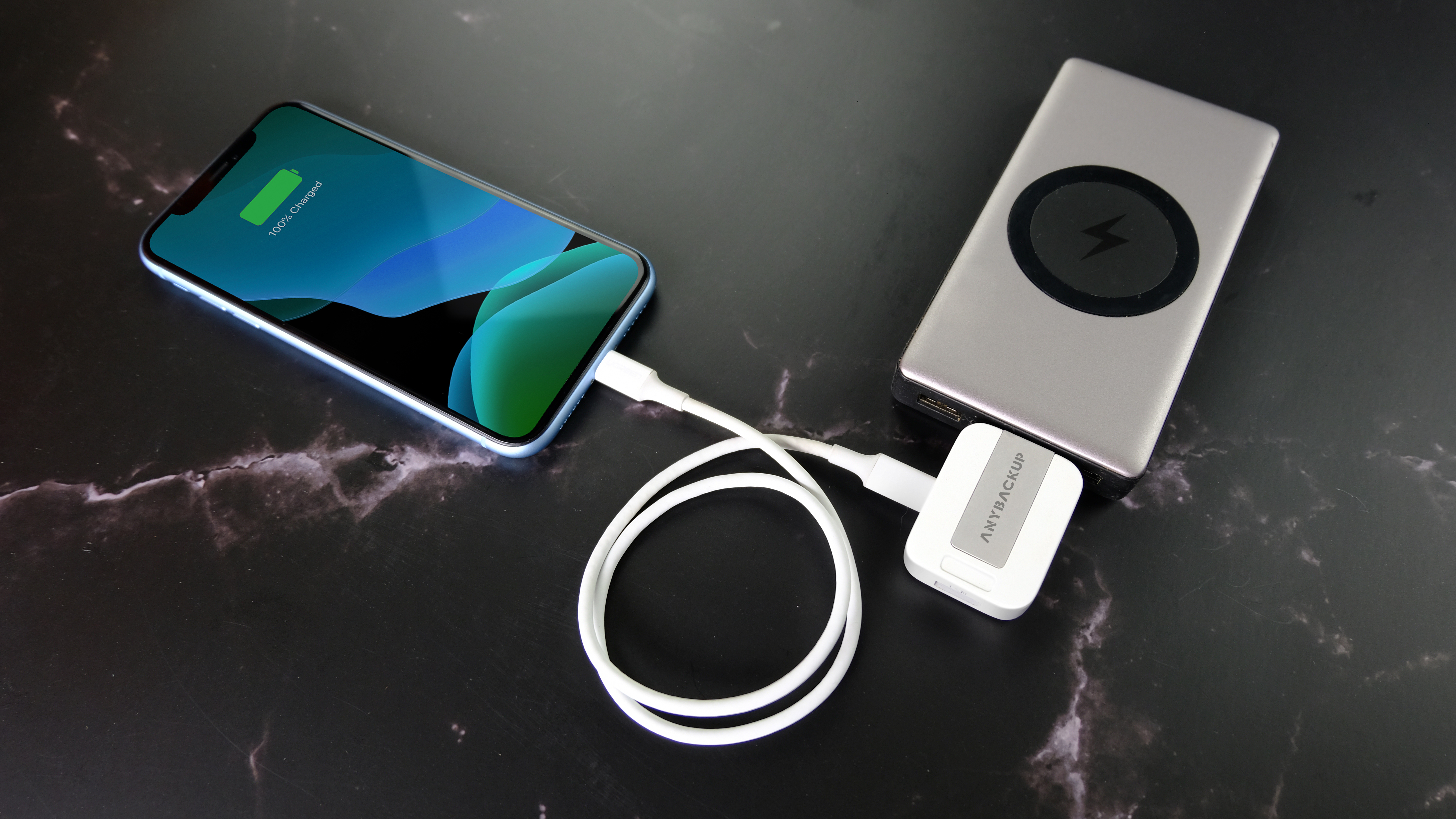 Another great feature of AnyBackup is that you can connect it to an external power source while it’s also plugged into your iPhone or iPad. That means AnyBackup saves your data and also recharges your device’s battery at the same time, offering support for Super Fast Charge up to 100W.