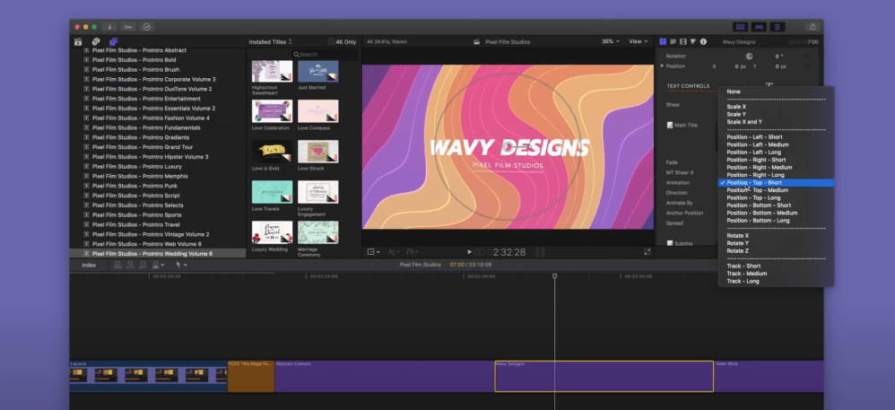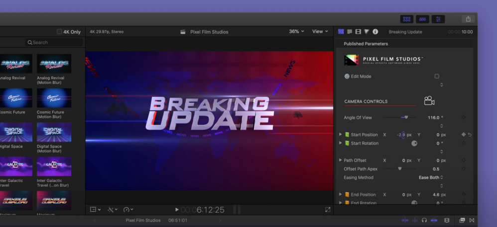 Like the Title Mega Pack, users can use any font on their Mac with built-in easy-to-use text animation options. To help fully customize the look and feel of each trailer, there are available camera tools in the inspector to alter the start and end positions of the camera.