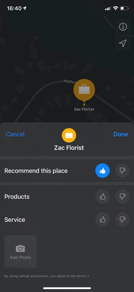 iOS 14 beta 6 includes new UI that lets users recommend a place with a thumbs up or thumbs down. The rating system can differentiate between categories, so users can rate the quality of purchased products in a shop highly even if they didn’t get the best service. At least at this early stage, the rating UI is only visible for a small subset of all POIs on the map.
