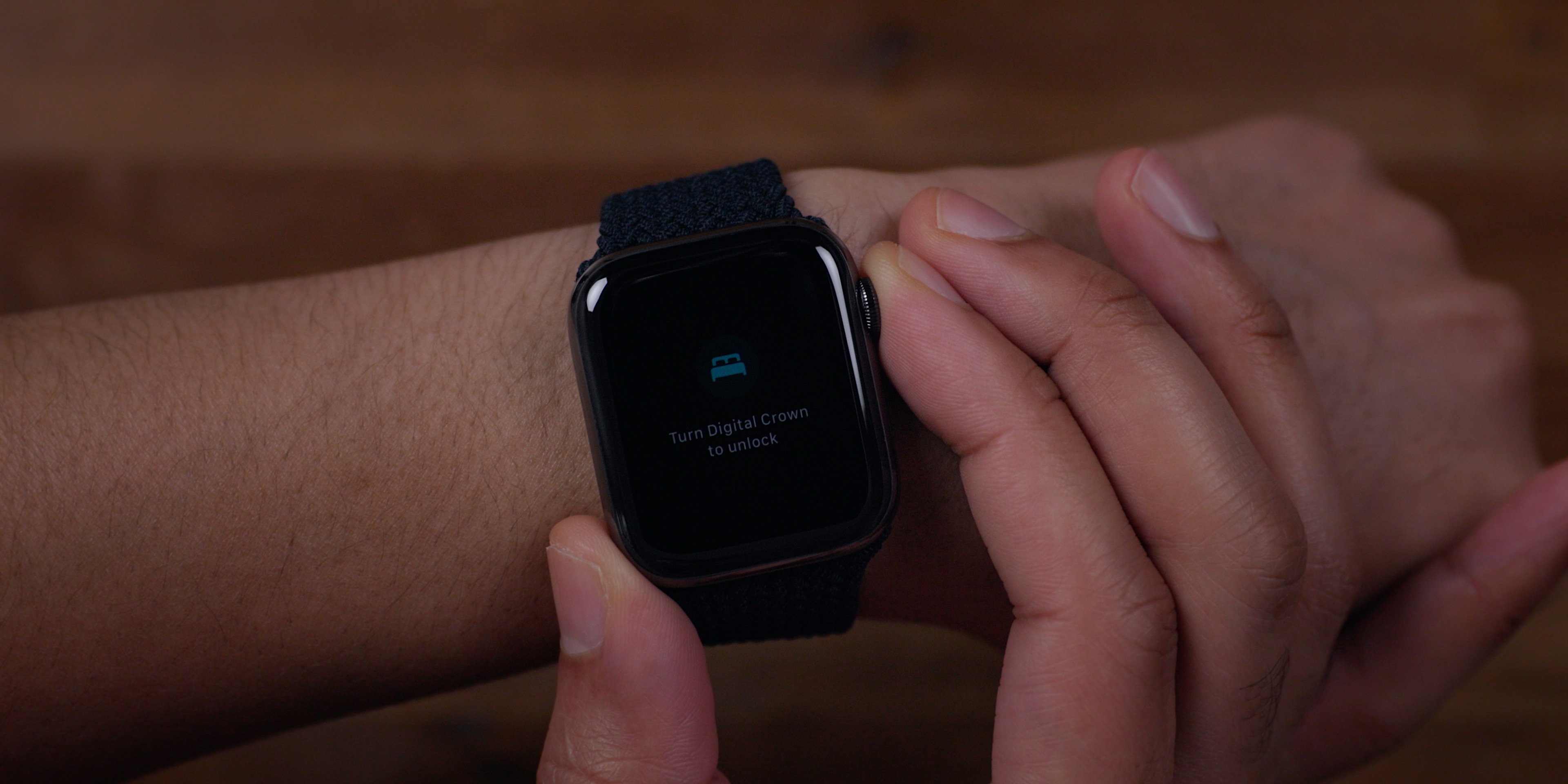 During the configurable wind-down period, which occurs just before bedtime, the Apple Watch will automatically place itself into do no disturb in order to get you prepared to sleep. Once bedtime arrives, the Apple Watch goes into a deeper sleep mode that disables the auto-waking display. Users can wake the Apple Watch manually, but even then, a dim screen with just the time and scheduled wake-up time are displayed.