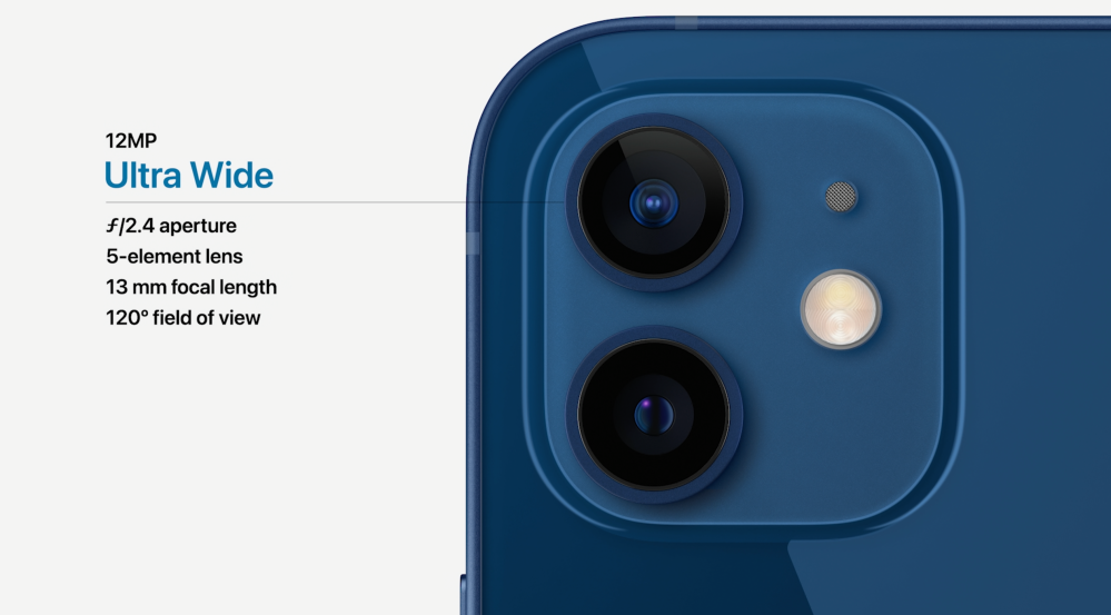• iPhone 12 features a dual-camera setup with wide and ultra wide lenses: