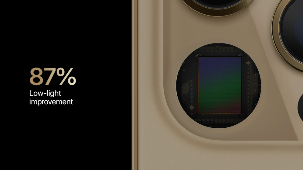 The iPhone 12 Pro Max also includes the Ultra Wide and Telephoto cameras for closer shots. Combined, this system offers 5x optical zoom range, Apple says. The Max sensor is 47% larger, 87% improvement for low light photography, new optical image stabilization system.