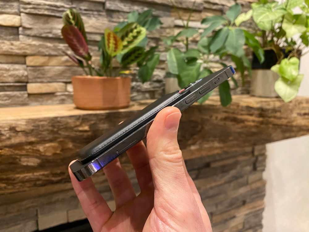 - The iPhone 12 Pro + the Leather Wallet has a nice/comfortable feel and contour in hand (used so far without a case)