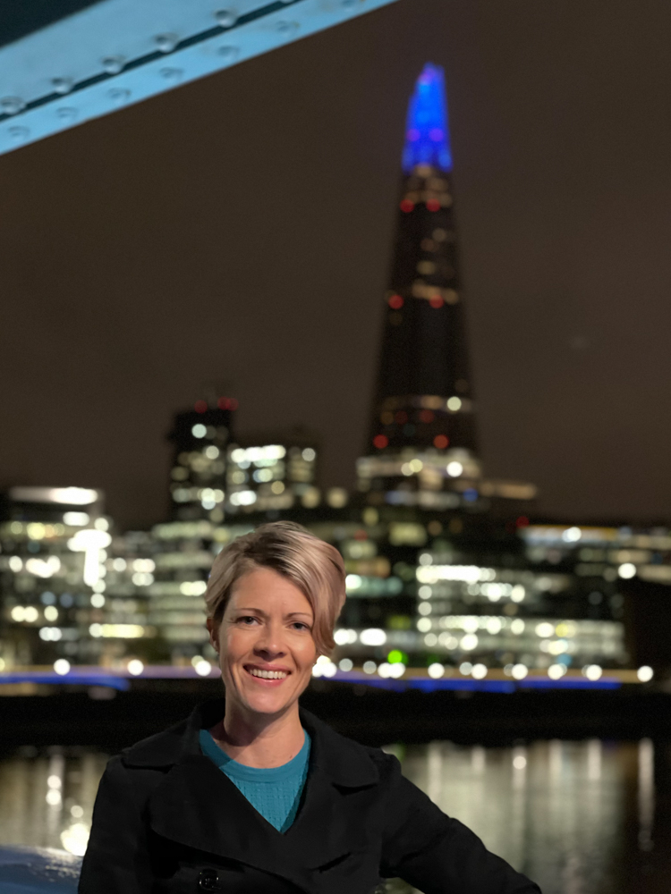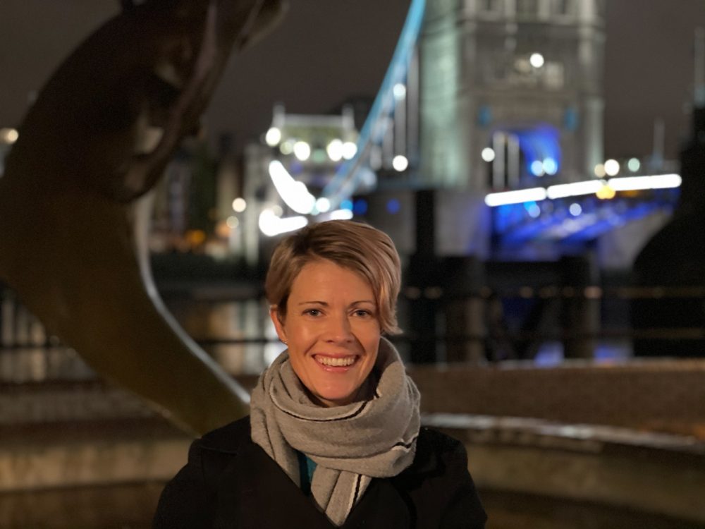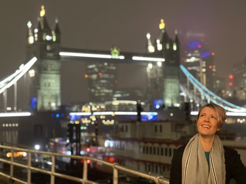 For the final shot, I wanted to give the iPhone the ultimate bokeh challenge! I chose a very layered scene. Layer one is Caroline. Layer two is the fencing, which is right behind her in the foreground, but the angle then puts it progressively further away – so really this is layer two through two-point-nine. Layer three is the boat; layer four, Tower Bridge (though as the right tower is further away at this angle, that’s really layers four and four-point-five); layer five, the City buildings behind it.