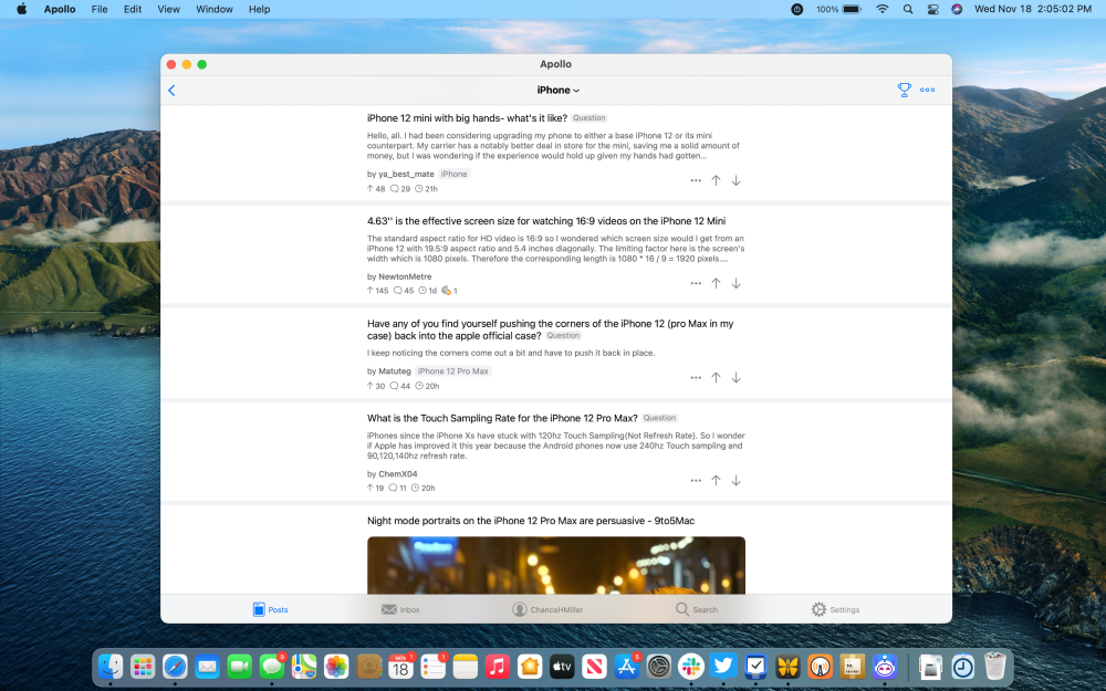 The experience of running an iPhone or iPad app on the Mac really varies by application, and the correlating factor appears to be whether the app is any good on the iPad to begin with. For instance, applications like Apollo for Reddit and Overcast offer stellar iPad apps, so they run quite well on the Mac.