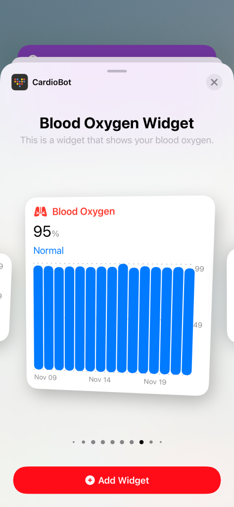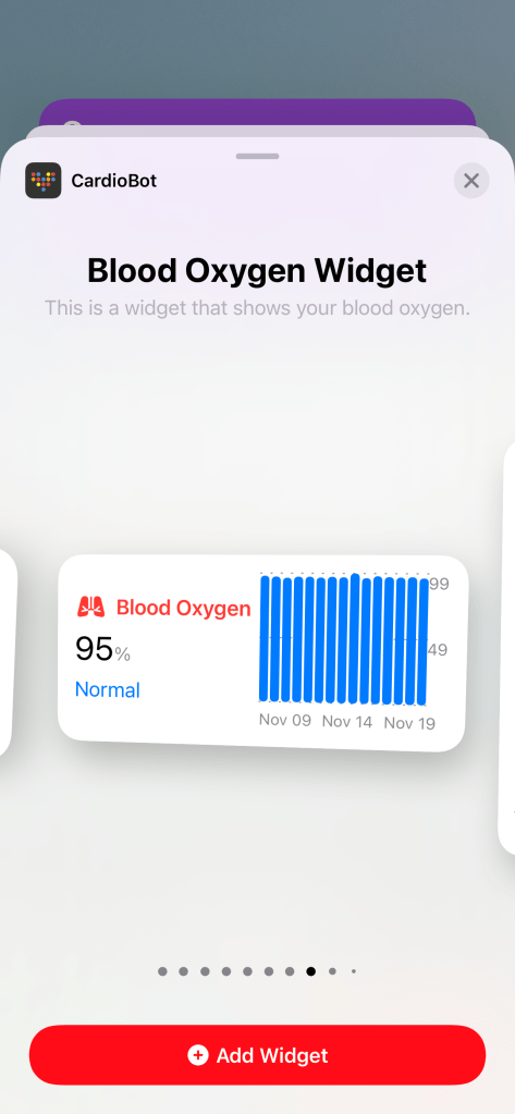 The new version of CardioBot includes a handful of new home screen widgets for iOS 14: blood oxygen, resting heart rate, heart rate variability, and a small version of the heart rate summary. By adding these widgets to your iOS 14 home screen, you can monitor your Apple Watch health data at a glance.