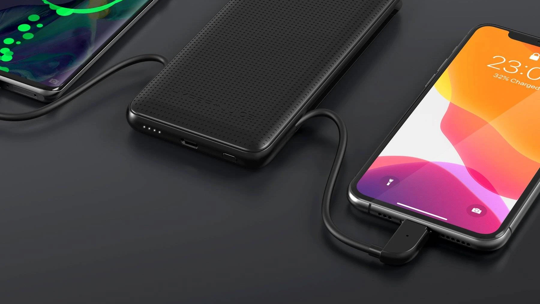 Need more juice on the go? The HyperJuice battery pack is a great choice with integrated charging cables for both Lightning devices like iPhones and iPhones, and USB-C devices. Quick charge an iPhone from zero to 50% in half an hour with the 18 W power output. All in an easy-to-carry package that’s hardly any bigger than your smartphone. The battery pack even includes a separate USB-C port in order to charge it up, so you can charge your phone and the battery pack simultaneously