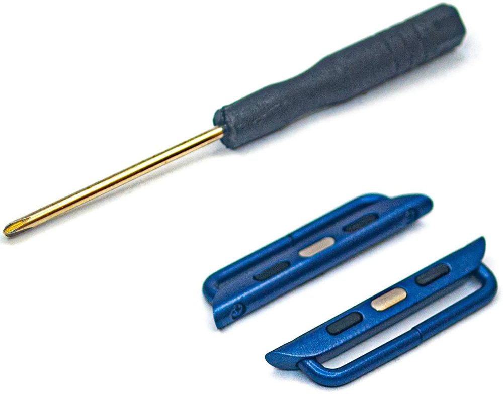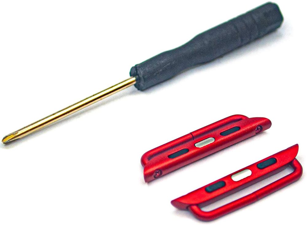 You can find red, blue, pink, and black lugs all over the web. But the ones I ordered were from Amazon. For $7.49 you can pick up two lugs and a replacement screw tool. You’re gonna need that tool in order to take apart your Apple Watch band of choice.