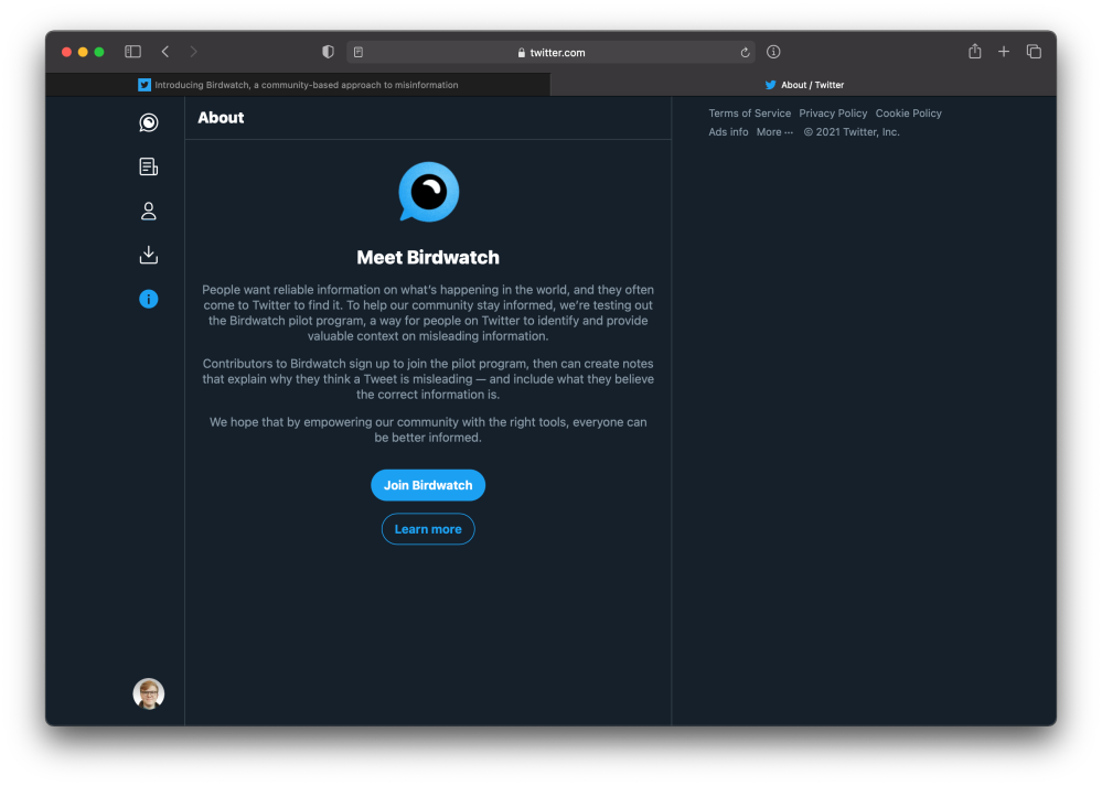 Twitter is starting off this new initiative with a separate website that you can sign into with your Twitter credentials. It’s clear that Twitter is excited about this new initiative but is still not completely sure of its viability. They note in their press release that this is a pilot program, and it lives on a separate website specifically to allow them to determine if Birdwatch can truly help combat misinformation.