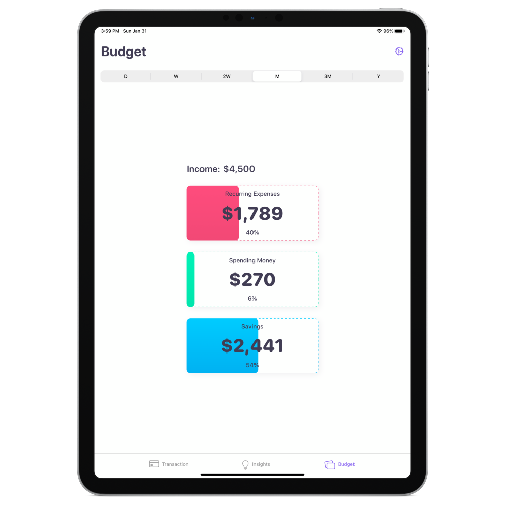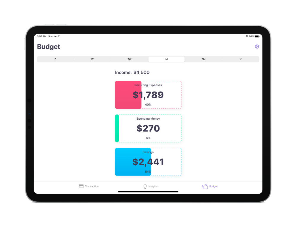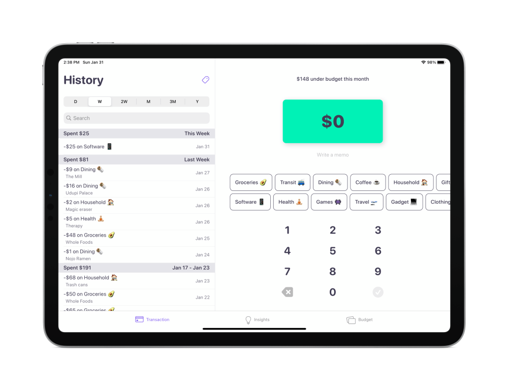 Building on iCloud syncing support, one of the biggest change with today’s update to Nudget is an all-new iPad app. The app is now universal, which means it’s optimized for the iPad’s larger display. The iPad version of the app includes all of the same functionality as the iPhone version, including insights, widgets, and more.
