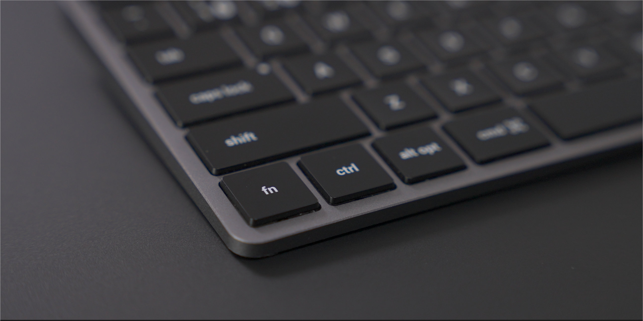 Although I like the look of the space gray anodized aluminum paired with the black keycaps, I quickly remembered how much black keys show fingerprints, grease, and dust. Using the Slim X1 made me appreciate the relatively low maintenance white keycaps found on Apple’s Magic Keyboard.