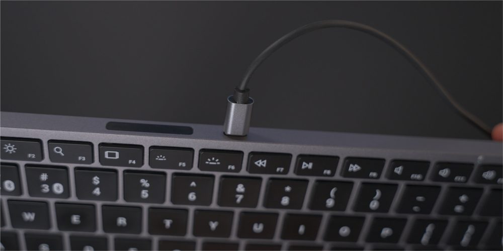 Included with the unit is a USB-C charging cable for recharging the Slim X1’s internal battery. The USB-C cable, or any USB-C cable for that matter, can be used to put the Slim X1 into wired mode so that you can connect directly without Bluetooth. Wired mode is enabled automatically when a USB-C cable is connected, but you can toggle between the Bluetooth and wired modes by pressing one of the Bluetooth keys or the Eject key (combined with the Function key) to switch back to wired mode.