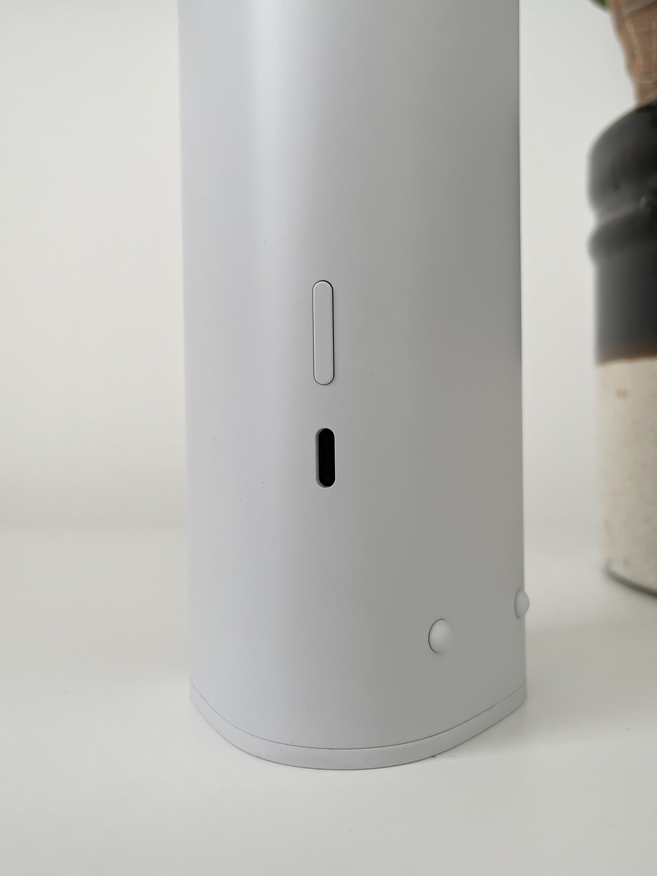 Four small rubber dots on one side of the prism offer a stable non-slip base when you want to use Roam horizontally. Around the back, you’ve got the sleep/power button and a USB-C port for wired charging.