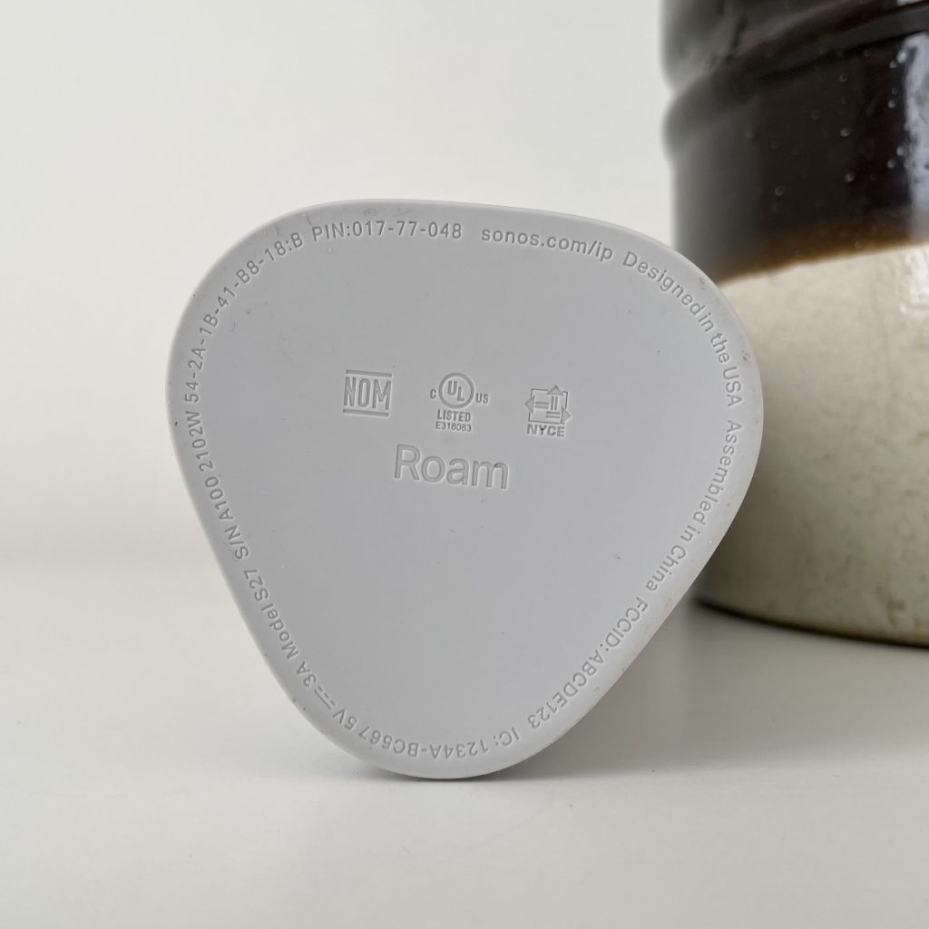 Sonos Roam uses a triangular prism shape that makes it easy to grab, place on its side, or stand up. It uses a durable rubber on the bottom and top for drop protection and those end caps are also concave so the buttons aren’t accidentally pressed. And the Roam base offers handy Qi wireless charging.