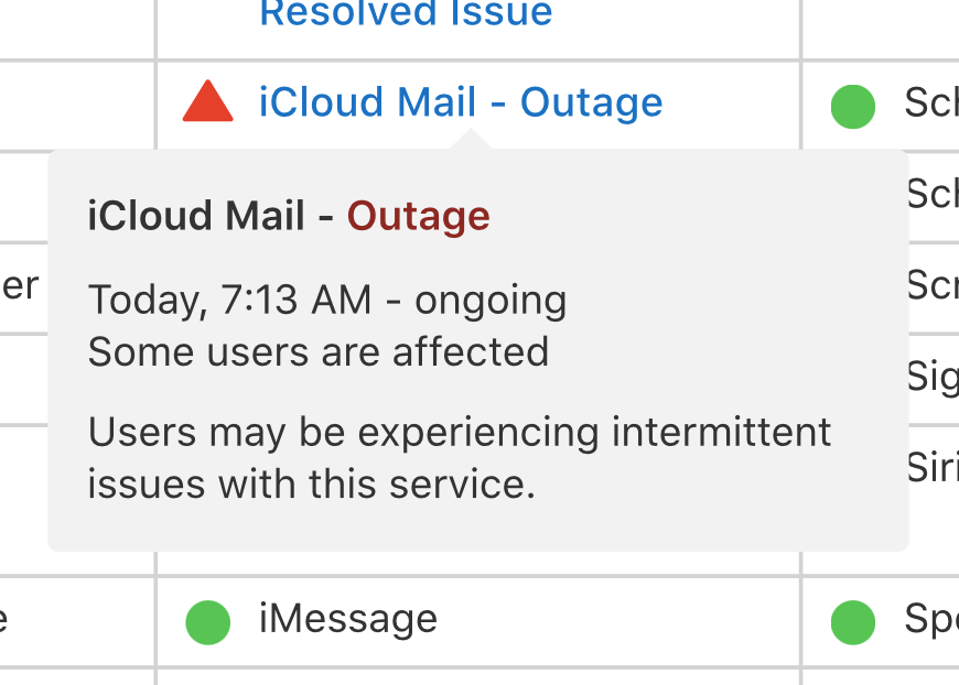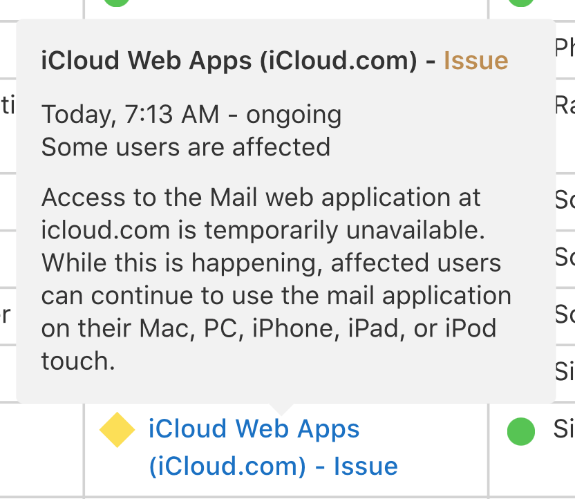 Apple noted the iCloud Mail issue this morning on its System Status page that started around 4 am PT / 7 am ET and is “ongoing.”