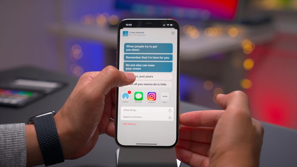 The Music app update for iOS 14.5 also features the ability to Share Lyrics with others via the iOS Share Sheet. Users can select one or more contiguous lines of lyrics (up to 150 characters) to share directly with friends or via Instagram Stories. The shared lyrics not only contain the desired text, but you’ll also find a color-matched background based on album artwork, and a direct link to the specific part of the song on Apple Music.