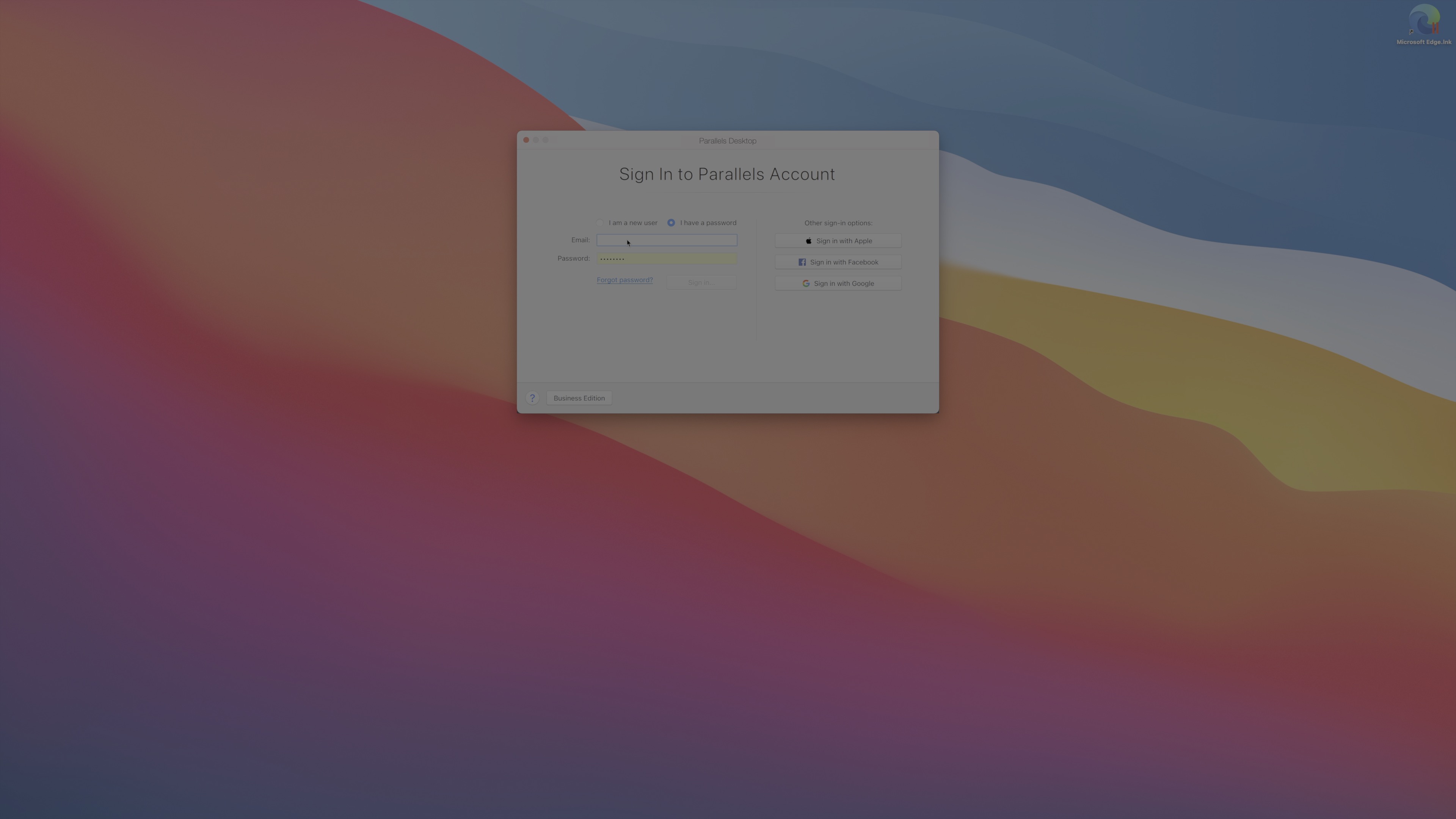 Once the installation is completed, you’ll be presented with an Installation Complete message. Click on the message to continue. You’ll need to sign in to your Parallels account in order to proceed. If you don’t already have a Parallels account, you’ll need to create one.