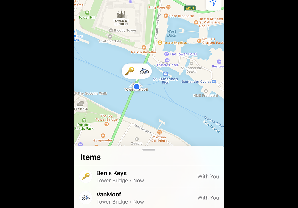 That done, the VanMoof S3 appears in the Find My app alongside my Apple devices and AirTags. In the above example, I’m exactly in the center of Tower Bridge, and the app positions the bike (and my AirTagged keys) perfectly.