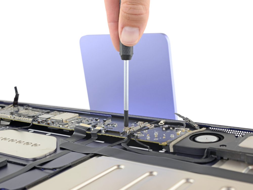 While signals are still transmitted through the logo, there’s now a rectangular metal plate behind it — and not something specifically made with the shape of the Apple logo. There are also two unknown circles in the middle of the computer, which could be coin cell batteries.