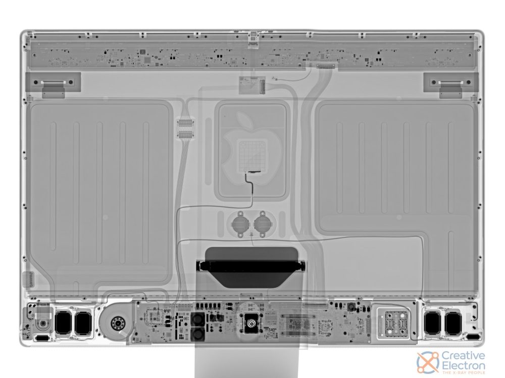 An X-ray of the new iMac shown by iFixit reveals some interesting details about the machine. In previous generations of the iMac, Apple has used the Apple logo on its computers as the antenna for Wi-Fi and Bluetooth connections, but this year things have gotten a little different.