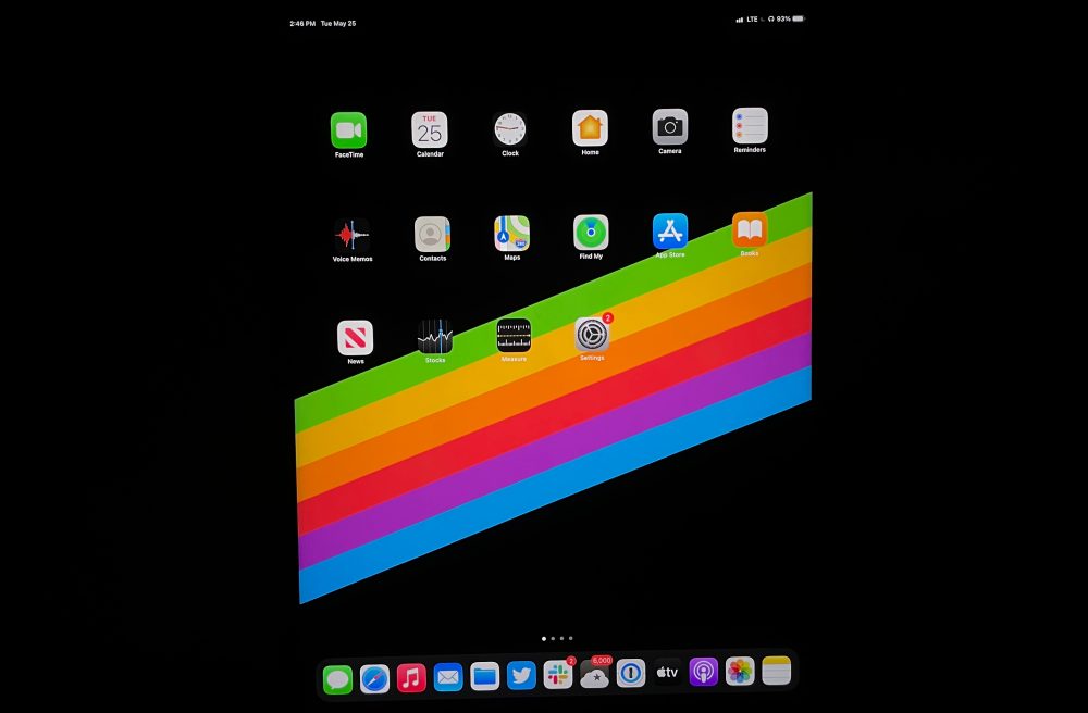 Where it falls short is interesting. As an OLED enthusiast, I was quick to test the new iPad screen in pitch black environments with various levels of brightness. I was disappointed to find that white elements like status bar icons, border lines around sections of an app, and especially white text on a black screen really do not do well.
