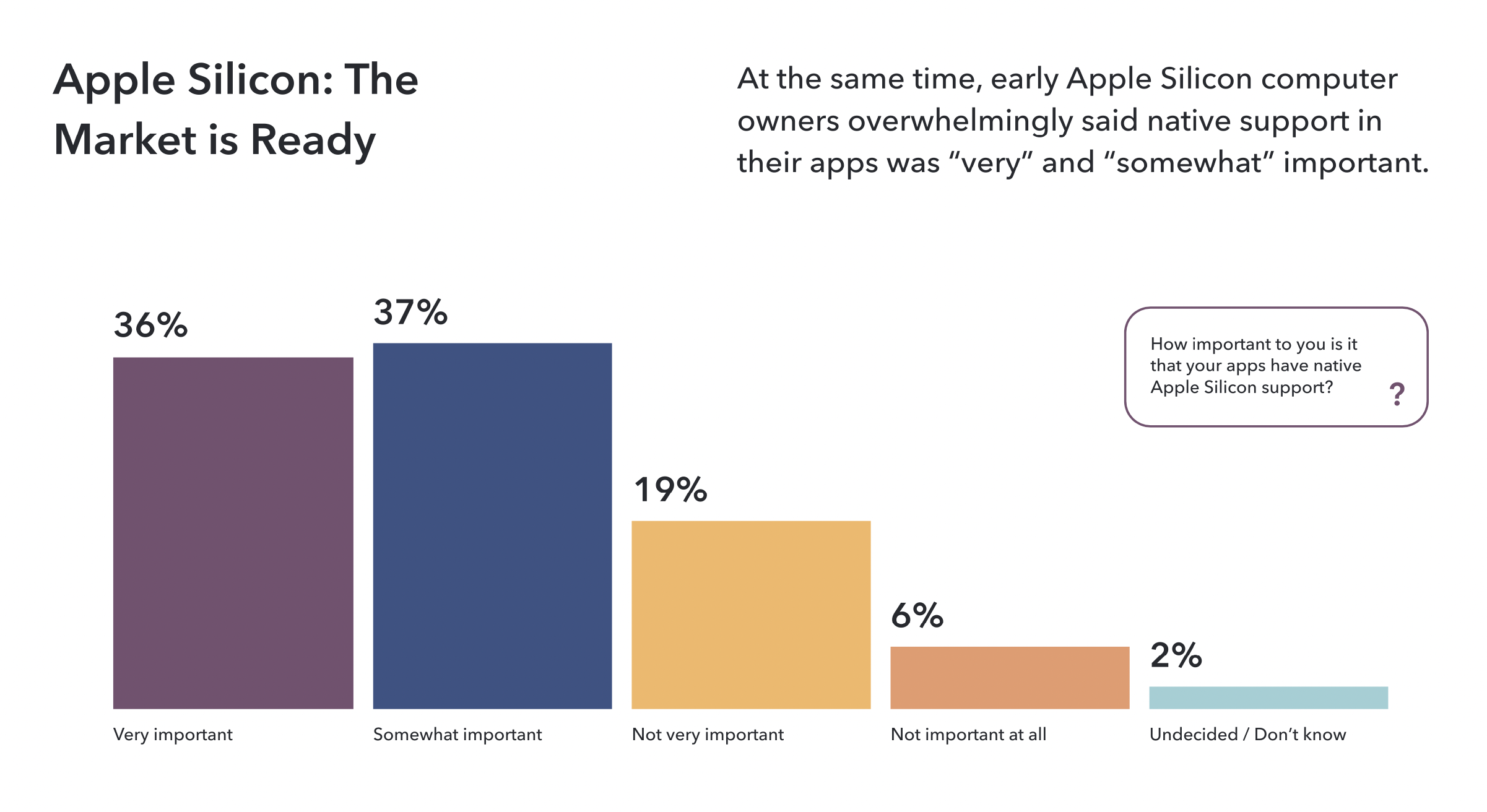 Other findings include a majority of Apple Silicon Mac owners finding native support important, and overall, Mac owners prefer software that’s specifically designed for macOS.