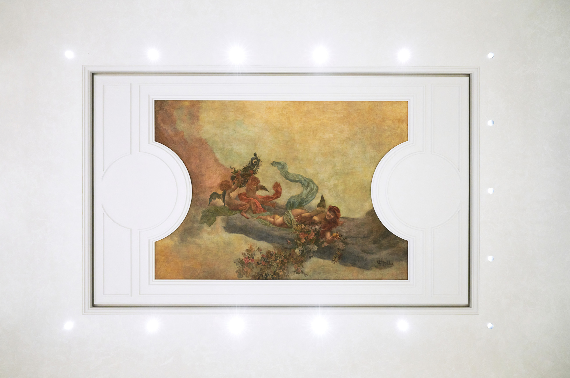 Originally constructed in 1873 by renowned architect Salvatore Bianchi and a second renovation by architect Giulio Podesti, Palazzo Marignoli was the home of Marquis Filippo Marignoli and housed Caffè Aragno, one of Rome’s most notable gathering places in its day frequented by artists, writers, and actors. Several pieces of art showcased in Caffè Aragno have been carefully restored and thoughtfully incorporated within the new store design, including multiple graffiti panels created by Italian painter Afro Basaldella in 1950. The teams were also able to revive and integrate Fabio Cipolla’s “Dawn” and Ettore Ballerini’s “Dusk,” two large ceiling paintings that date back to the early 1900s.