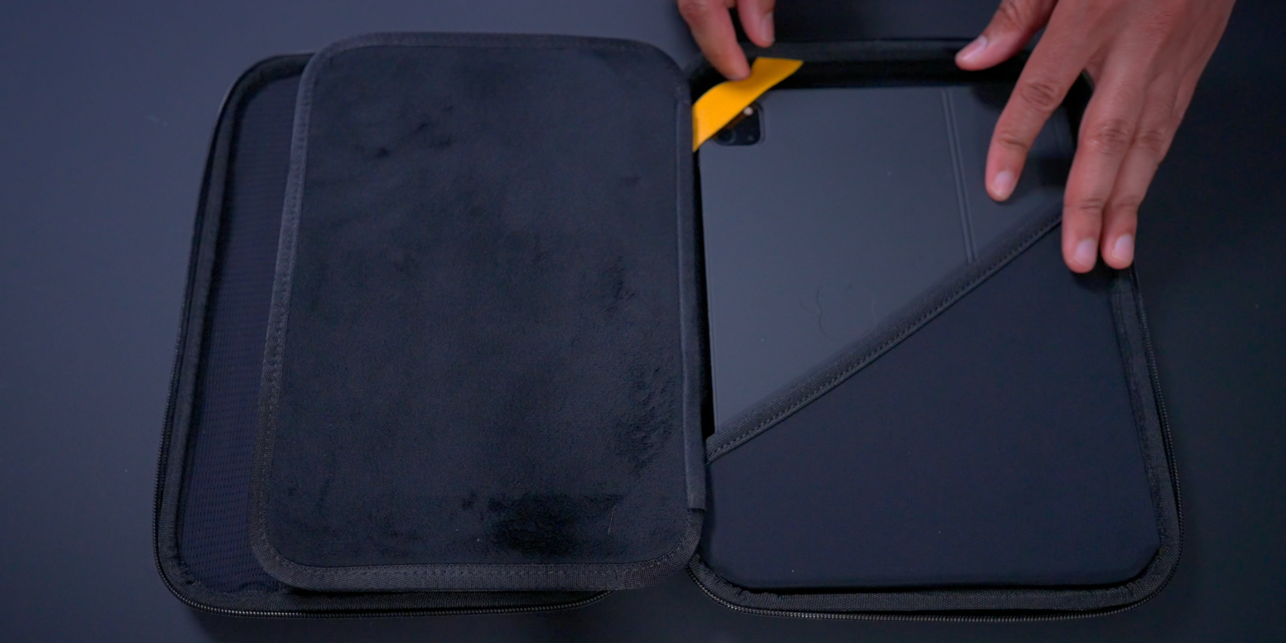 Of course the tomtoc PadFolio excels at drop protection, and it features military grade 360-degree coverage that can protect its contents from accidental drops and bumps. The inside of the case where the iPad resides features soft-touch fabric to protect its display, along with a secure strap to keep your tablet in place.
