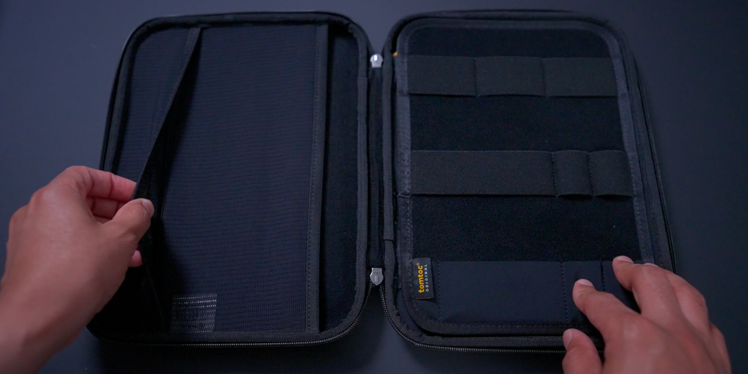 Design-wise the tomtoc PadFolio features a hard shell exterior covered by water-repellant mesh fabric. This design choice ensures that your iPad and corresponding accessories will be safe even in bad weather. The unit also features YKK zippers, which are renowned for their durability and smooth operation.
