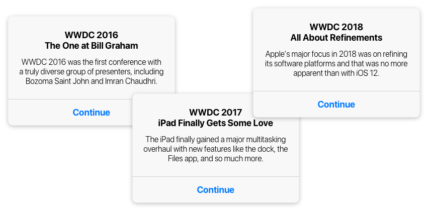In the three years that followed WWDC 2015, Apple held some really interesting conferences. From the only WWDC to held at the Bill Graham Civic Auditorium with the first truly diverse group of presenters to the introduction of real iPad multitasking to the one that was all about refinements.