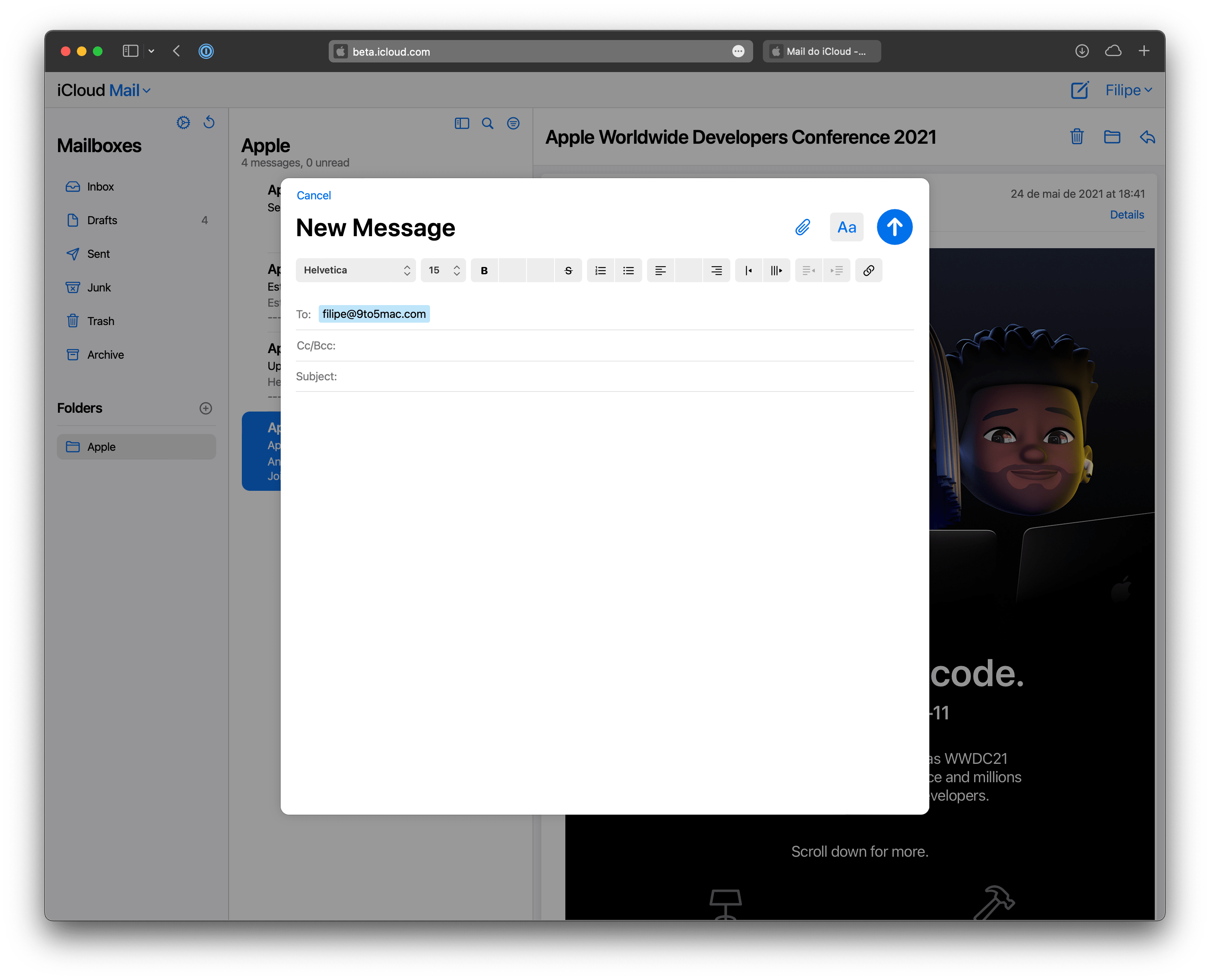 Another difference between the old and new iCloud Mail on the web is the mail composition panel, which now pops up in the same window, while the old one brings the composition panel in a separate window.