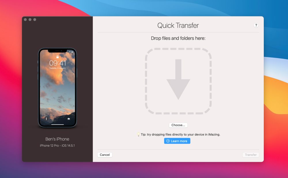 Import and export music, videos, ringtones, ebooks, apps and more with a simple drag and drop UI. Don’t mess around with Apple’s music syncing: copying a folder of songs to your phone takes just a couple of clicks with iMazing.