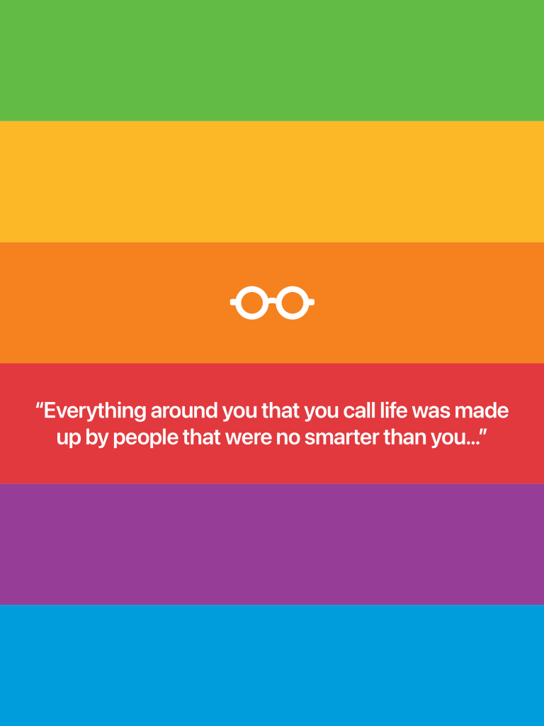 When you grow up, you tend to get told that the world is the way it is, your life is just to live your life inside the world, try not to bash into the walls too much, try to have a nice family, have fun, save a little money.