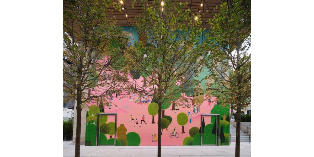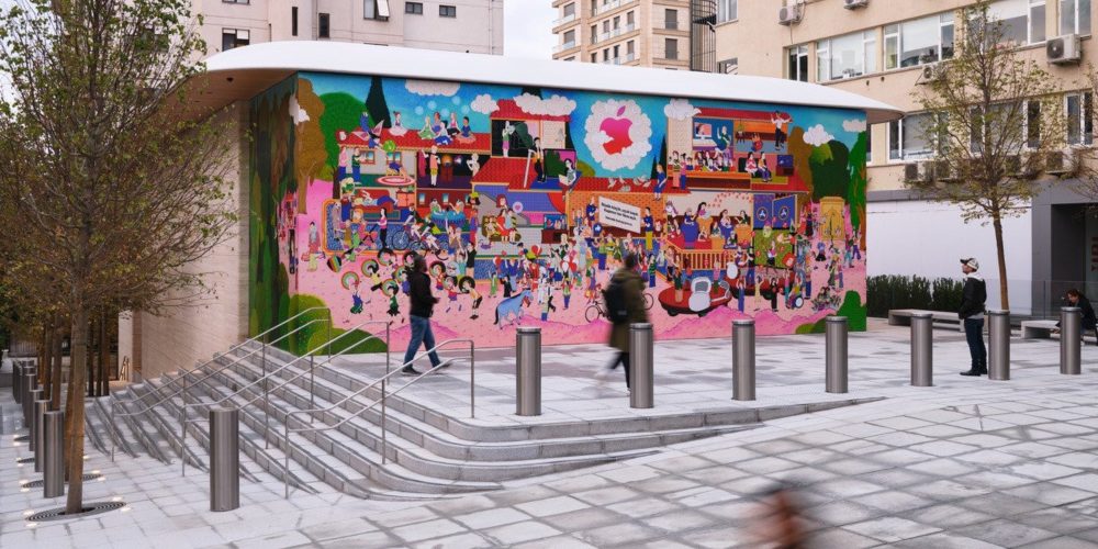 Not only that, the Turkish website Bigumigu posted some images of the front of this new store shared by Apple. While people can’t look inside, the retail’s exterior will be decorated by Murat Palta. The mural combines lots of pink and green colors while merging really well with the community.