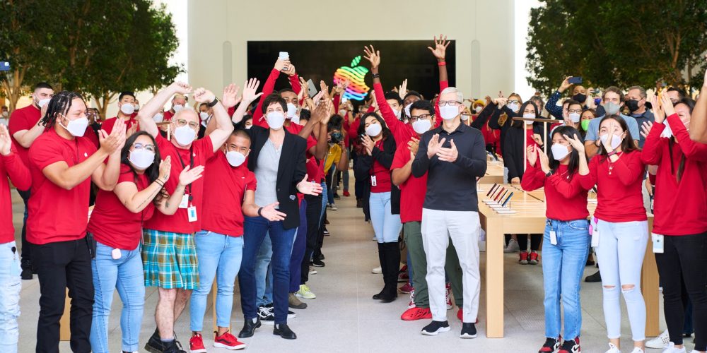 Now, one day after its reopening, the company shared a few shots of the store, including customers experiencing Apple products, and, of course, Apple’s CEO, Tim Cook, and senior vice president of Retail + People, Deirdre O’Brien welcoming people.