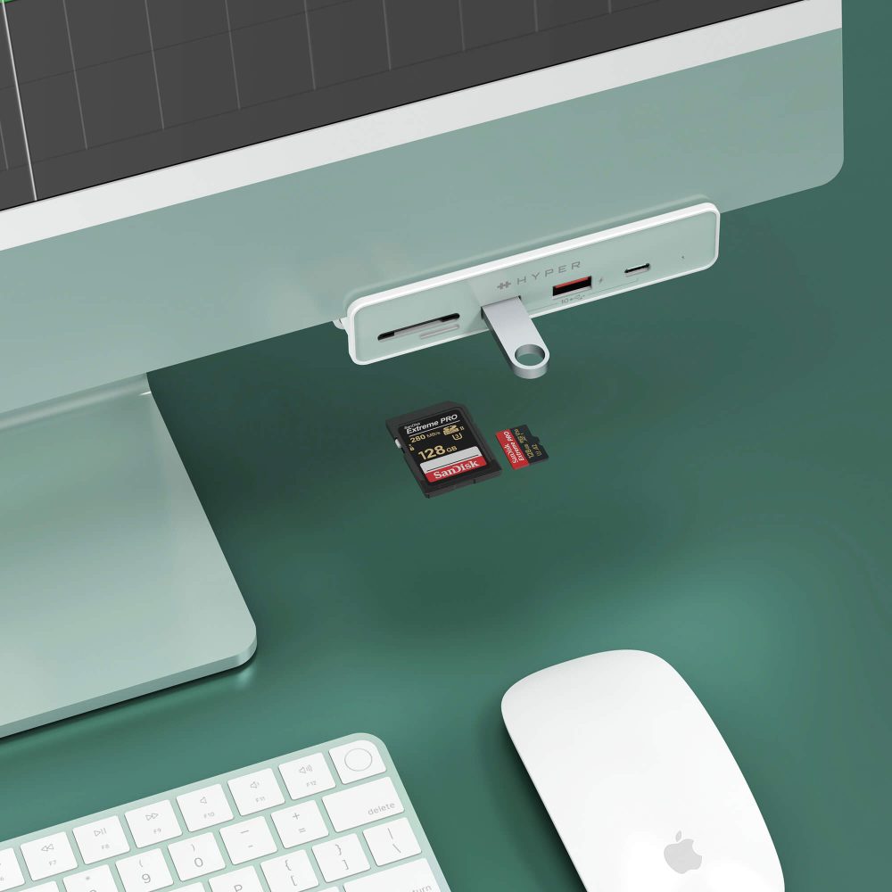 Hyper has adapters specifically designed for Apple desktops as well. This year Apple unveiled the all-new 24-inch iMac with M1 chip, multiple color options, and a thin design that replaces traditional I/O with USB-C ports. Hyper’s USB-C Hubs for iMac 24-inch bring back useful ports on a mountable adaptable with convenient access and swappable color plates to match the new desktop design.