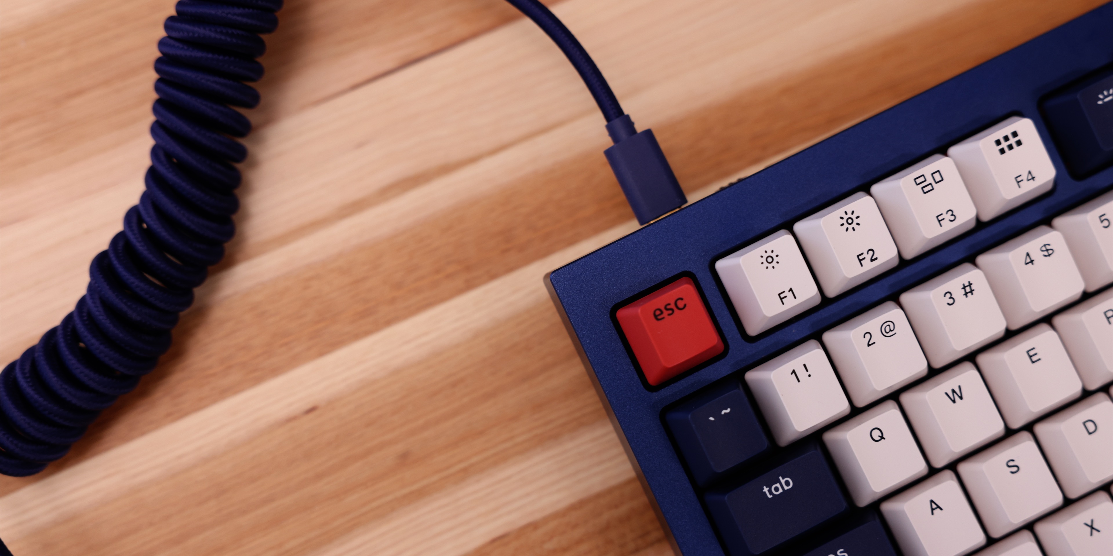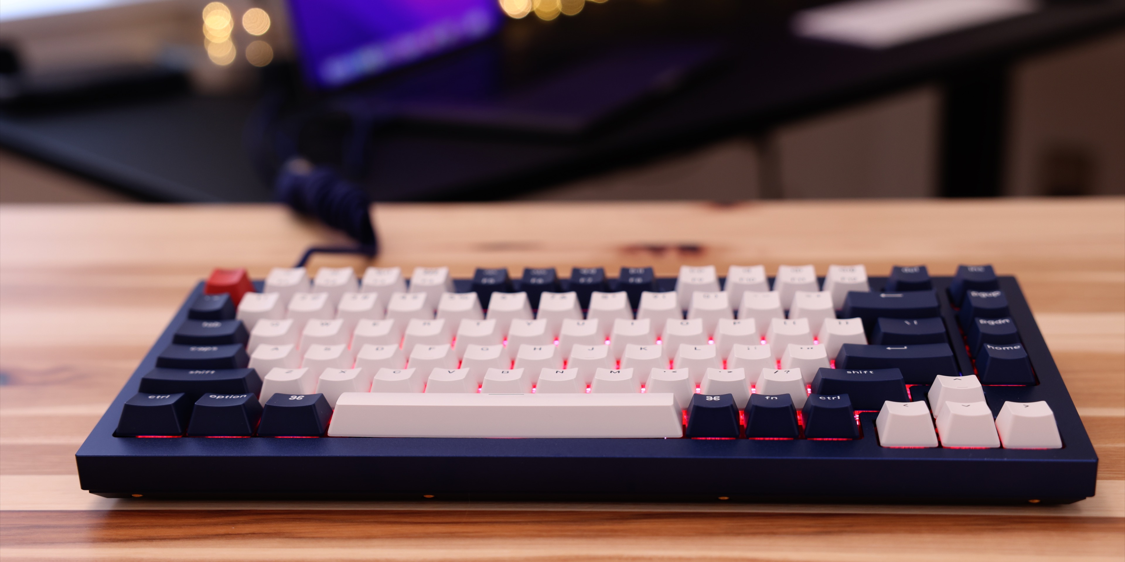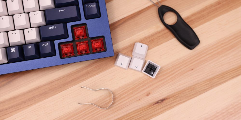 Arriving inside of a familiar black Keychron box, my Q1 review unit came fully assembled in navy blue. Along with the keyboard, you’ll find a coiled USB-C aviator cable, Windows-centric keycaps, switch and keycap remover tools, Allen wrench and Philips drivers, and a few extra screws, gaskets, and non-slip feet.