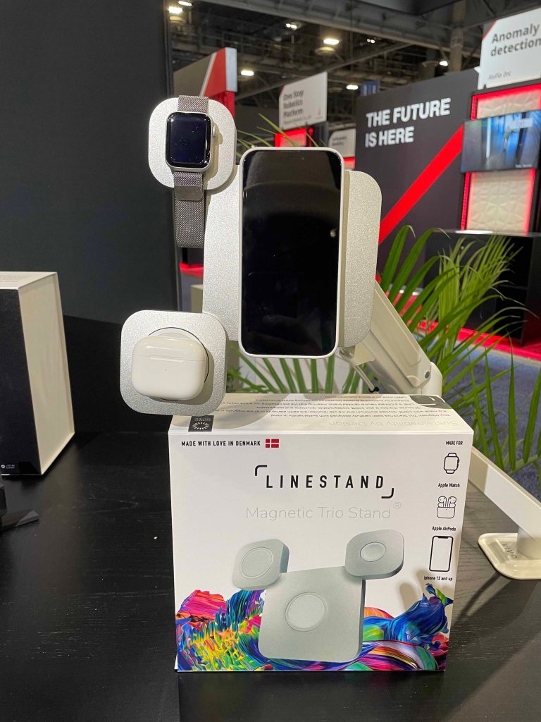 LINE decided to take a different approach by making its entire LINESTAND multidevice MagSafe + Apple Watch charger float thanks to a universal VESA mount on the back. That means you can use an existing mount arm or a new one to place this sharp iPhone, AirPods, and Apple Watch charger on your desk, counter, or wall exactly how you want it.