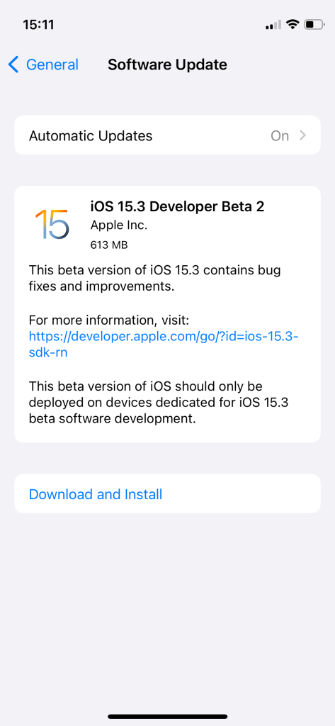 Today’s new release of iOS 15.3 beta 2 is available to developers via an over-the-air update in the Settings app. As usual, if the update does not immediately appear for download, keep checking, as it sometimes takes a few minutes to roll out to all registered developers. The build number of iOS 15.3 beta 2 is 19D5040e.
