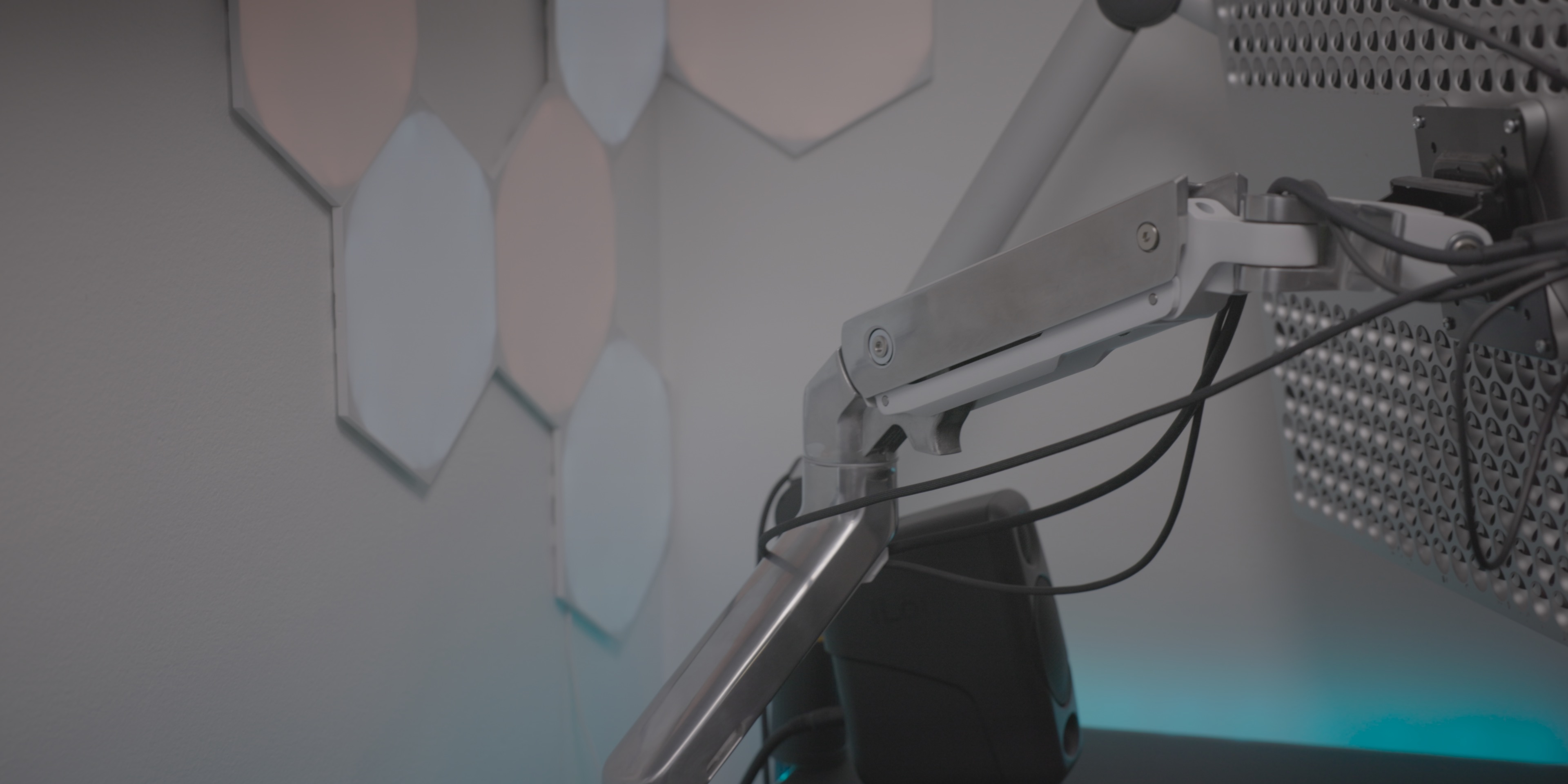 To add a splash of color to the background, I have a few Nanoleaf Shapes panels mounted to the wall behind my desktop setup. I also have a Nanoleaf LED light strip attached to the back of my desk for even more color when needed.