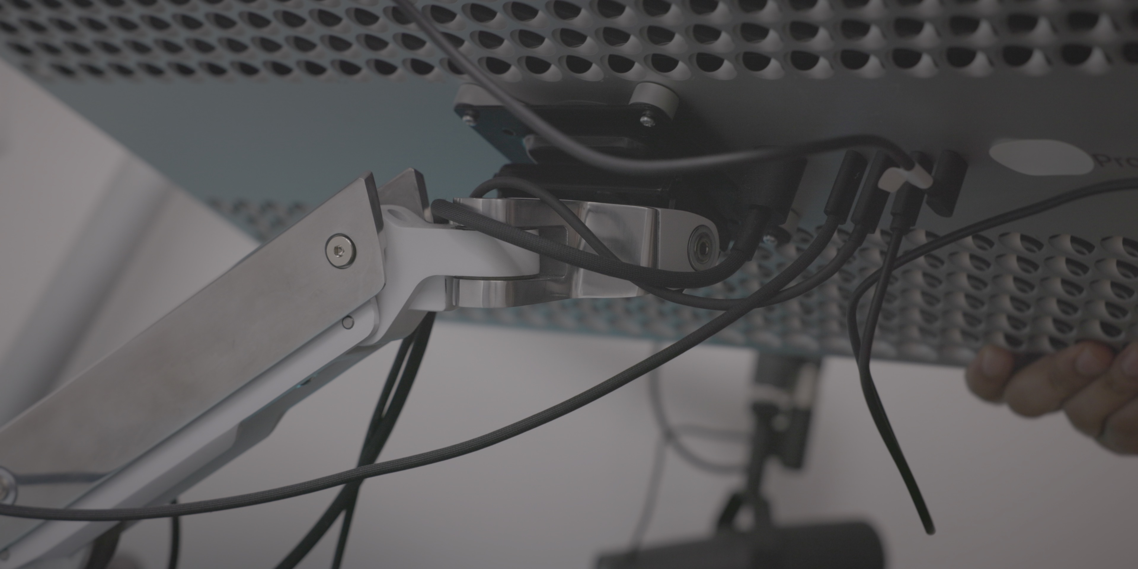 The HumanCentric Mac mini mount screws into the underside of my desk, and securely cradles the M1 Mac. Not only does this setup allow me to reclaim precious desktop real estate, but it also helps out with cable management, which is something I’ve always struggled with.