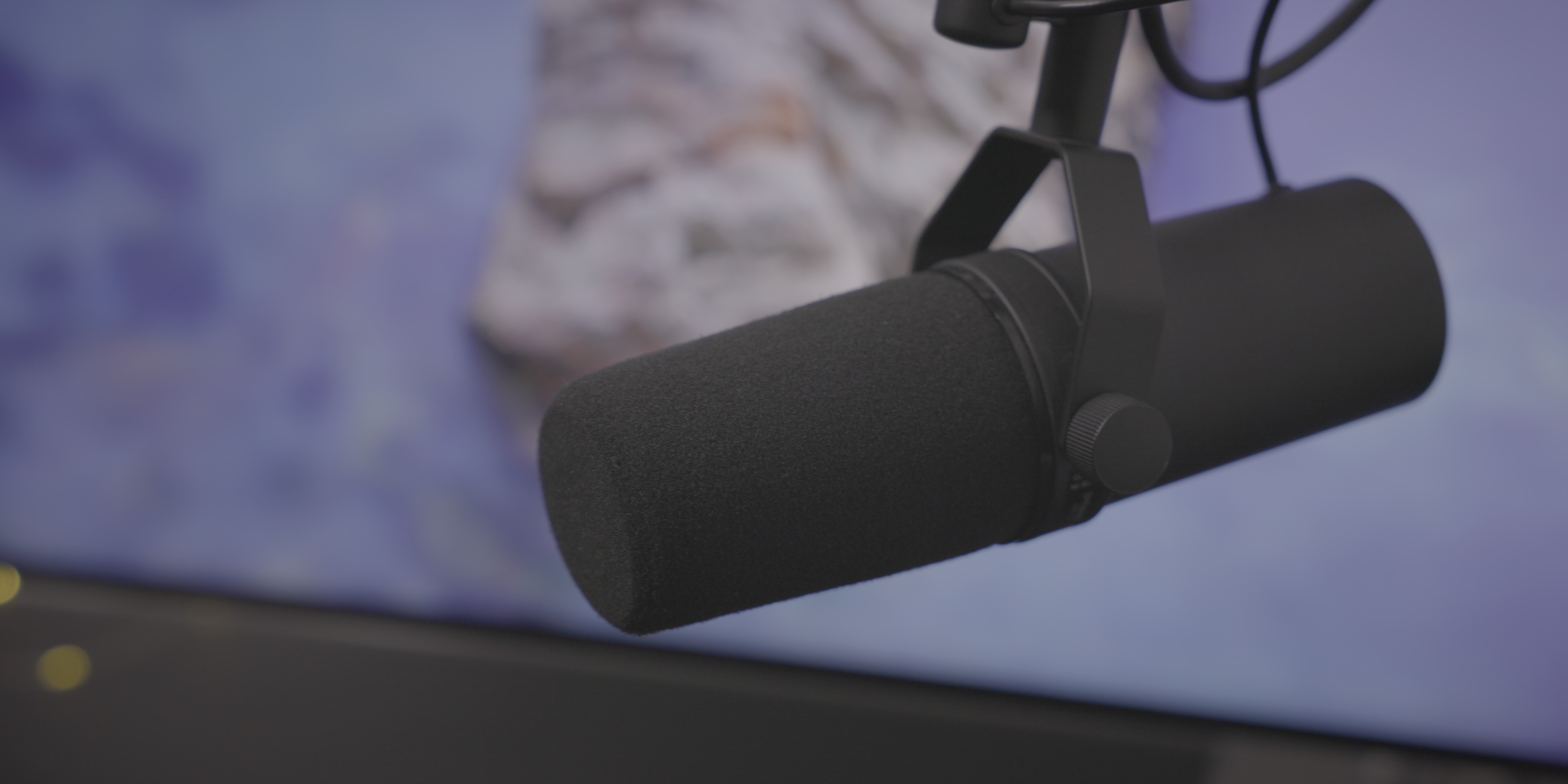 - Shure SM7B mounted on a YellowTec M!ka microphone arm