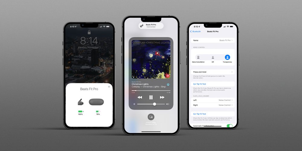 Beats Fit Pro, on the other hand, pack Apple’s latest H1 chip with support for all of the features we’ve come to expect: automatic device switching, spatial audio with dynamic head tracking, Active Noise Cancellation, Transparency mode, Hey Siri, Find My integration, iCloud sharing, and the aforementioned Ear Tip Fit Test.